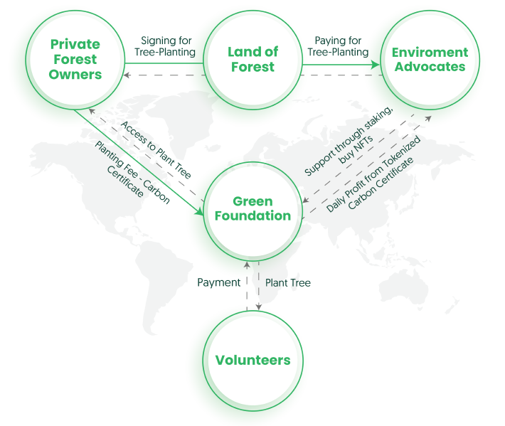 The Green Foundation is an innovative environmental crypto project that connects private forest owners with environmental advocates to facilitate tree-planting and reforestation efforts.